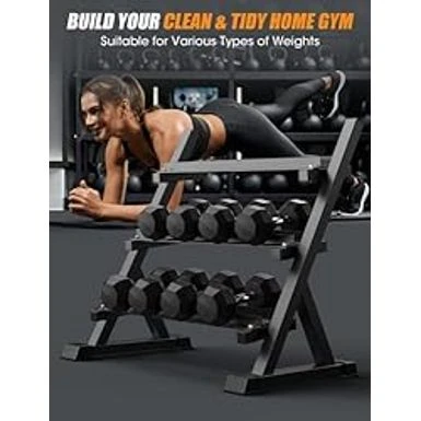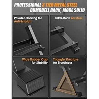- Stable and SturdyWith a large natural rubber feet pad, the weight storage rack is very stable and sturdy, with no worry about toppling and falling. Plus bonus, it has protective silicone inserts protecting your dumbbells from damage, also securing your fingers.Moreover it absorbs shock during re-stocking, preventing the rack from sliding.