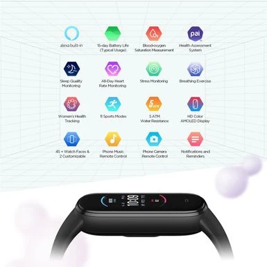 You can talk to Amazon Alexa on your Amazfit Band 5. Ask Alexa questions, get translations, set alarms and timers, create shopping lists, check the weather, control your smart home devices and more.