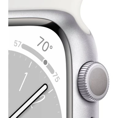 Apple Watch Series 8 (GPS) 45mm Aluminum Case With White Sport Band – M/L – Silver