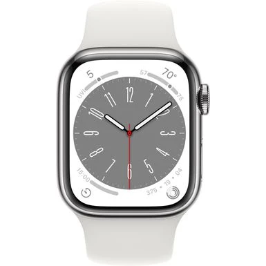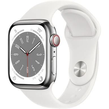 Apple Watch Series 8 GPS + Cellular 41mm Silver Stainless Steel Case With White Sport Band – M/L – Silver