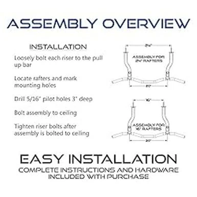 - EASY INSTALLATION: The Ceiling Mount Pull Up Bar is precision engineered for easy home installation and includes assembly instructions, mounting template on heavy stock, complete hardware, and USA tech support