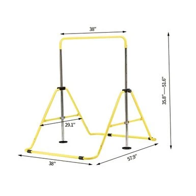 - Easy to assemble&Fold in Seconds-Our Junior kip training bar features on easy to assemble and fold design to save space and be convenience to store.Gymnastic Bar Folded Size: 38″(L)x17.7″(W)X46.5″((H),Pull the Safety Folding Levers on Both Sides to Finish Fold in Few Seconds,Expanding,Folding is Very Easy.You just pull up the connecting rods on both sides of bar to fold it in few seconds.