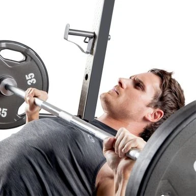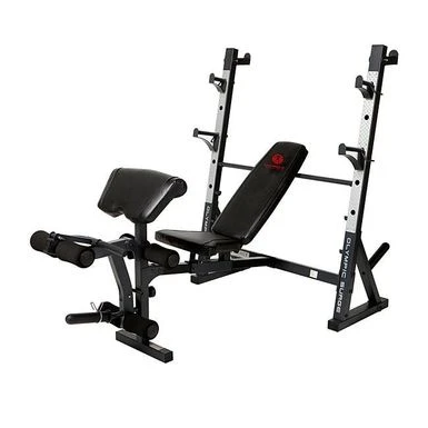 - Accepts Olympic size barbell and weight plates