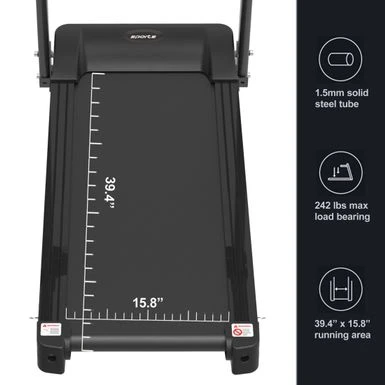 Product Description The treadmill is a new model that designed for online sale specially,equipped with adequate functions to meet the exercise needs of different groups of people. Product DescriptionThe treadmill is a new model that designed for online sale specially,equipped with adequate functions to meet the exercise needs of different groups of people. It is also equipped with extra functions – MP3,manual incline and air spring. Music is available when you are running on the treadmill,air spring makes operation easier and foldable design brings space saving. It will be a pleasant experience if you choose this treadmill for home gym fitness.Product Features- The treadmill is equipped with 5″ LCD display and 12 pre-set programs, one-touch operation helps you to enjoy the running at home. You can monitor real-time data for each exercise, including speed, time, calories, distance and pulse.- The treadmill is equipped with a 2.0HP peak power motor and one set intelligent electronic controllers which can not only bring you a silent running experience but also keep the stable running speed from 0.6 MPH to 7.5 MPH (1 – 12 KM/H).- The treadmill is equipped with 39.4″ x 15.8″ diamond shape belt which can withstand a maximum weight of 242 pounds. It’s also equipped with 3-levels manual incline at the end of sidebar which brings a good running experience with 3 different running gradients during exercise.- Foldable design (by air spring) helps the end user to assemble the treadmill easily and effectively,it’s also easy to move and store the treadmill.Product Main ParametersMotor Power 2.0 HP peak powerRunning Area 39.4″ x 15.8″ / 1000 x 400MMSpeed Range 0.6 – 7.5 MPH / 1 – 12 KM/HMax User’s Weight 242 LBS / 110 KGSAssembly Size (L x W x H) 51.6″ x 26″ x 47.2″ / 1310 x 660 x 1200MMFolding Size (L x W x H) 22.5″ x 26″ x 49.2″ / 570 x 660 x 1250MMN.W. / G.W. 70.6 LBS / 81.5 LBS, 32 / 37 KGSExtra Functions MP3, Pulse, Manual Incline, Air SpringCustomized Modes 12 Sport Modes
