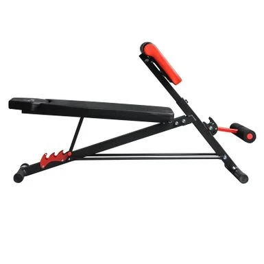 Adjust this at home workout equipment to lay flat or decline, and set it to two angles, -22.5 and -45, to target a wider variety of muscles and shape your abs, back, chest, core, and more. Four foot adjustments and seven thigh cushion adjustments make this home gym equipment easy to adapt and self-customize. Thick padding and an anti-slip base ensure safety and an ultra-comfortable feel while you perform tough fitness activity. Made of high-grade steel, this design features a scratch and wear resistant powder-coated finish to stand the test of time and retain better-looking quality long-term.