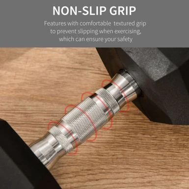 Each weight has an ergonomically curved metal handle with non-slip grip to prevent slipping for added safety. Keep your clutch secure and your equipment still with these hex dumbbells that are designed to avoid rolling around on the floor, shifting less when you rummage in storage. The rubber materials are safe on hardwood and tile, keeping accidents at a minimum. These free weights from Soozier will bring the gym home with you.
