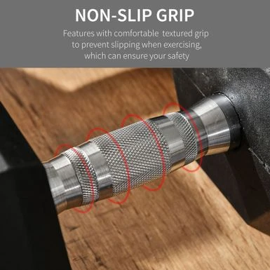The Soozier dumbbell set is a hexagon shape design that helps to prevents rolling during your workout or while in storage. With a solid metal handle features a non-slip grip to prevent slipping when exercising, which can ensure your safety, you can easily store and carry the set when finished workout. With this dumbbell set, you can exercise at home, in the office, or any place at any time.