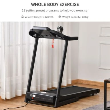 Get fitness into gear with this motorized treadmill from Soozier. The LED monitor displays time, speed, mileage, calories which will keep you more focused whilst working out. Made of a heavy-duty steel to last, it is strong and durable. Its built-in two cup tanks. It is finished with safety key which immediately stops it from moving when pressed from safety. The treadmill can also be folded and is equipped with two wheels so that it is easy for storage when not in use.