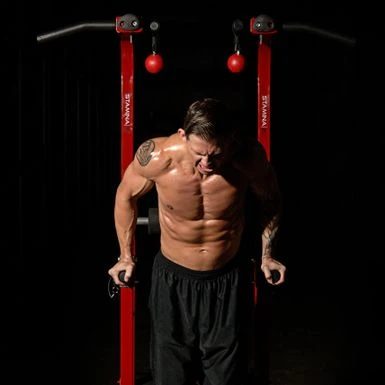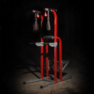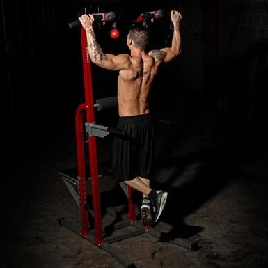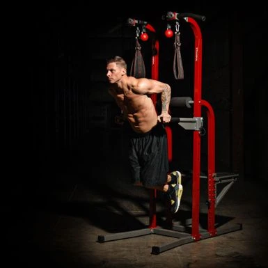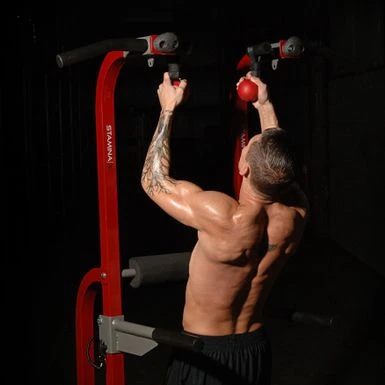 - Comfortable foam hand grips on pull-up and dip stations