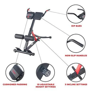 - DIP BARS: The dual functionality of the Foldable Roman Chair allows you to focus on not only your core, glutes and back but also on your upper body as well with the integrated dip bars.
