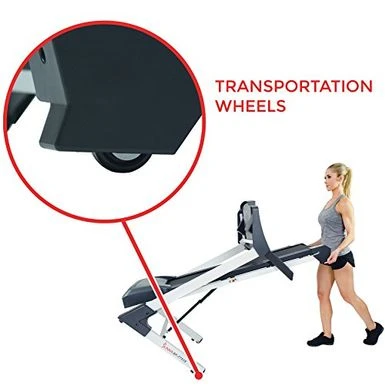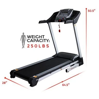 Never break your stride with the SF-T7515 Smart Treadmill with Auto Incline by staying connected with Bluetooth and MP3 technology right at your finger tips. The SF-T7515 Smart Treadmill with Auto Incline is packed with state of the art technology that will keep you engaged and connected. The large backlit LCD Monitor displays: Time, Distance, Speed, Calories, Incline, and Heart Rate. The treadmill is equipped with 12 preset interval programs that manipulate time, speed and incline. There are 3 countdown modes to target certain workout goals: Time, Distance, and Calories. User integrated Body Mass Index calculator will estimate body fat based on height and weight. BMI is a reference point for users to determine goals and fitness progressions when taken in different stages of training. Integrated speakers, microphone, Bluetooth and MP3 connectivity allows user to answer calls and listen to music. The ample running space allows user to run up to 8 miles per hour (12.87 kph) and to change incline up to 12% (7⁰ degrees). The treadmill is equipped with preset buttons to quickly increase speed and/ or incline. The treadmill is easy to fold up and move with the built in transportation wheels. The ‘Soft Drop System’ makes unfolding the treadmill virtually seamless.
