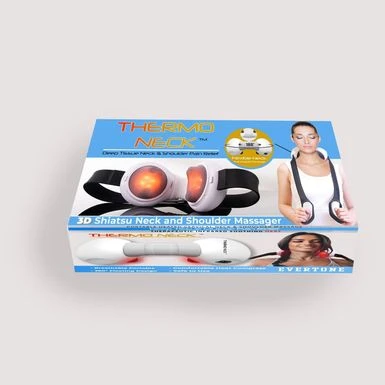 Thermo Neck Masager: The Thermo Neck massager provides you with a 42 degree constant temperature to ease muscle tension, neck pain treatment and promote blood circulation. Thermo Neck Masager: The Thermo Neck massager provides you with a 42 degree constant temperature to ease muscle tension, neck pain treatment and promote blood circulation. The device will turn off after 15 minutes of use.360 FLEXIBLE DESIGN: The Thermo Neck’s ergonomic construction fits your cervical spine seamlessly, for the most efficient massage.HEAT COMPRESS: Advanced sensors built into the Thermo Neck massager can precisely control the temperature range to prevent excessive heat. Relieve stiffness and swelling. Protect cervical vertebra health.
