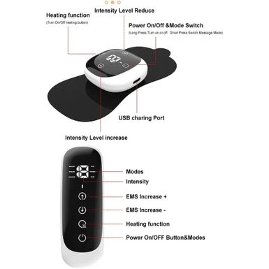 Touch screen LCD double channel Rechargeable device to relive pain with heating EMS for home, traveling, office, or just about anywhere Relax muscles and relieve soreness Simple operation and easy to use 6 modes and 19 gears Constant temperature heating Touch screen LCD double channelRechargeable device to relive pain with heating EMS for home, traveling, office, or just about anywhereRelax muscles and relieve sorenessSimple operation and easy to use6 modes and 19 gearsConstant temperature heating functionTENS low frequency pulse technologyReplaceable gel patch1 x Main Machine1 x Massage Pad1 x USB Cable1 x Use Manual1x Remote control