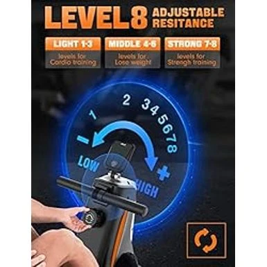 - 8 Level Adjustable Resistance 8 levels of magnetic tension for an easy or more challenging workout; Choose a level that’s right for you from diverse optional resistance levels, and awaken your unlimited potential to get better fitness results.