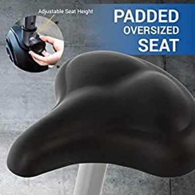 - Large, adjustable, padded seat fits riders up to 5’10”