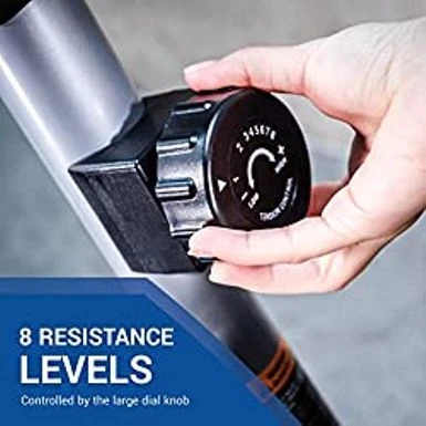 - Quiet, smooth, lower-body workout delivered through 8 levels of manual resistance